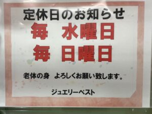 PM4時まで・明日は、定休日です。