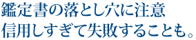 確かにダイヤモンドの品質を証明するためには鑑定書が目安になることには間違いありません。 しかし正確に評価をされていないものや、設備が整っていない会社の発行した鑑定書が数多く出回っています。ダイヤモンドを鑑定した時にグレードが鑑定書より劣っている場合も少なくありません。